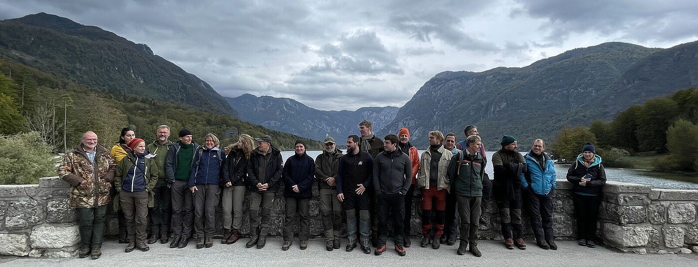 Der Freitag führte nach Slowenien. Dr. Franc Pogacnik, Betriebsleiter des 21.000 ha Kirchenforstes und Dr. Aleš Kadunc, Leiter des Forstunternehmens GG Bled, erwarteten die Thüringer ANW-Gruppe in Bohinjska Bistrica. Am Vormittag besichtigte man gemeinsam das Revier Jelovica. Große Schneebrüche, Stürme und Borkenkäferbefall sorgten für große Kalamitätsflächen in diesem Gebiet, die wiederbewaldet werden sollen. Es wurden dabei nicht nur waldbauliche Erfahrungen ausgetauscht, sondern auch Vergleiche der forstwirtschaftlichen Strukturen in Slowenien und Deutschland gezogen.