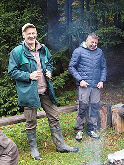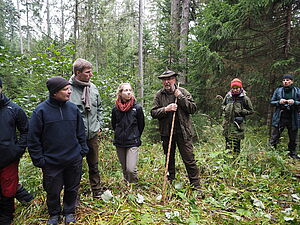Während der folgenden dreistündigen Revierbegehung diskutierte man mithilfe zahlreicher Tabellen und Diagramme über Kalamitäten, Naturschutz aber auch über Durchforstungen, Pflegen und Wiesenaufforstungen sowie über eine Dauerbeobachtungsfläche.