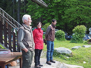 An der regen Diskussion - natürlich auch über Wald-Wild-Themen - beteiligten sich der Bezirksjägermeister Ing. Wolfgang Oswald (Dipl.Jagdwirt), der Leiter der Bezirksforstinspektion Villach DI Peter Honsig-Erlenburg, Rehwildexperte und erfolgreicher Umsetzer DI Markus Wedenig, der örtliche Jäger und viele andere.