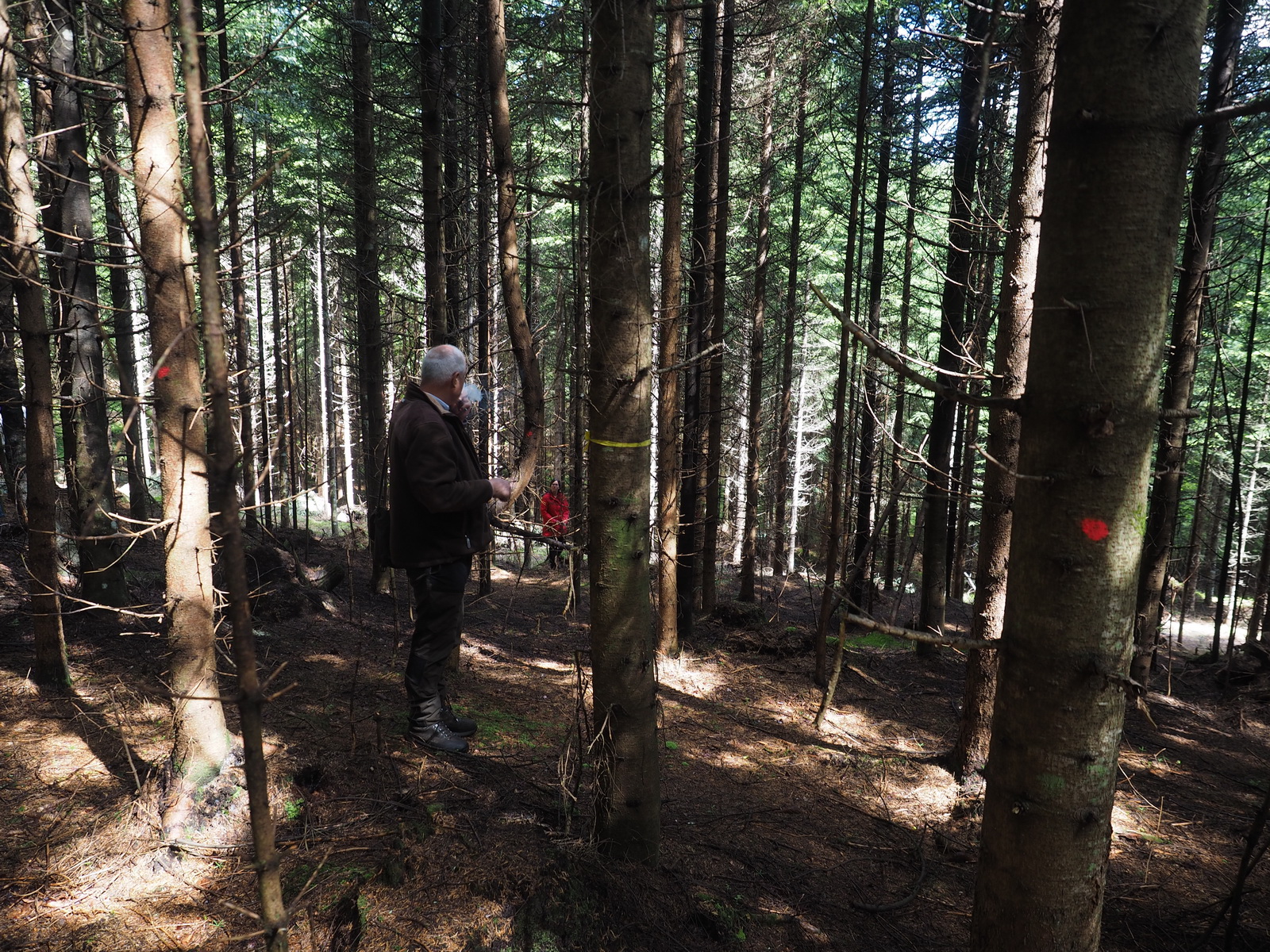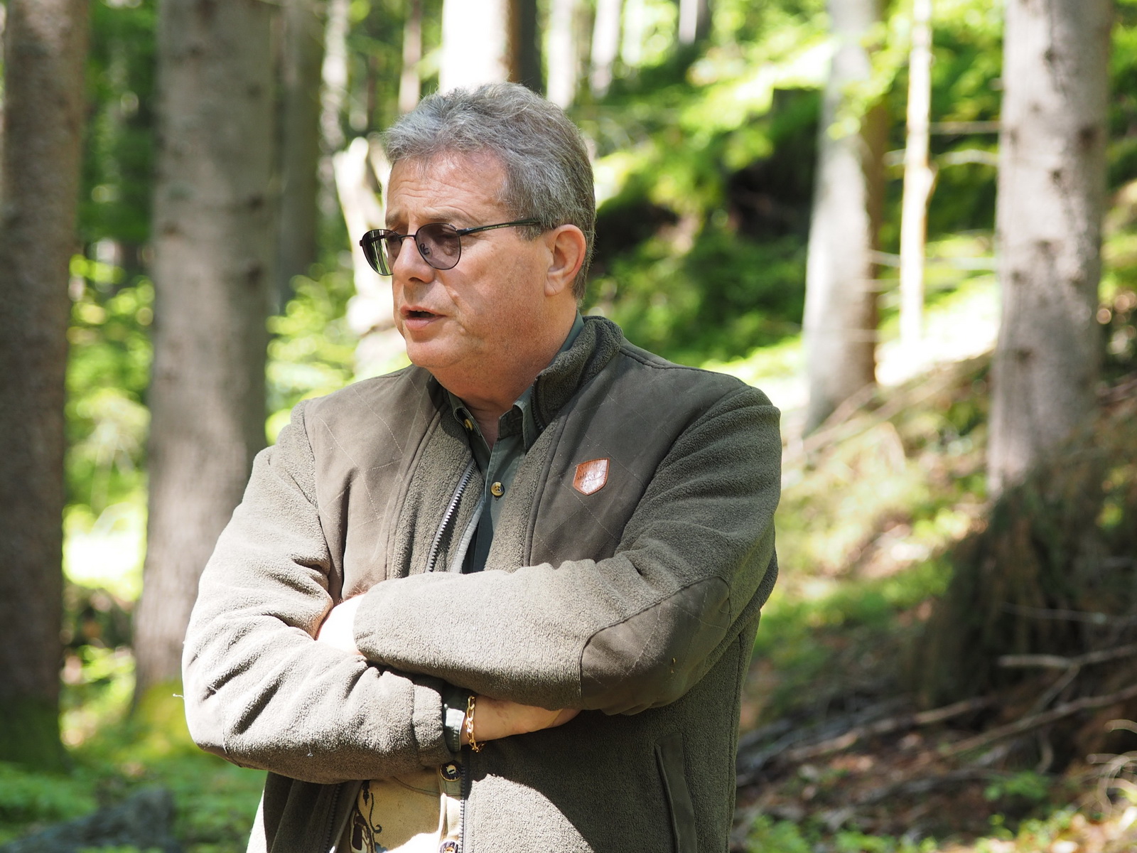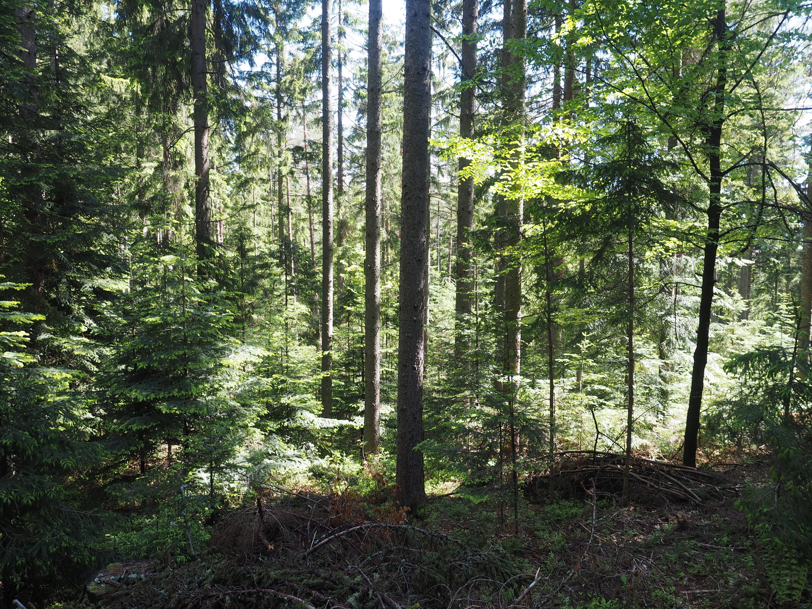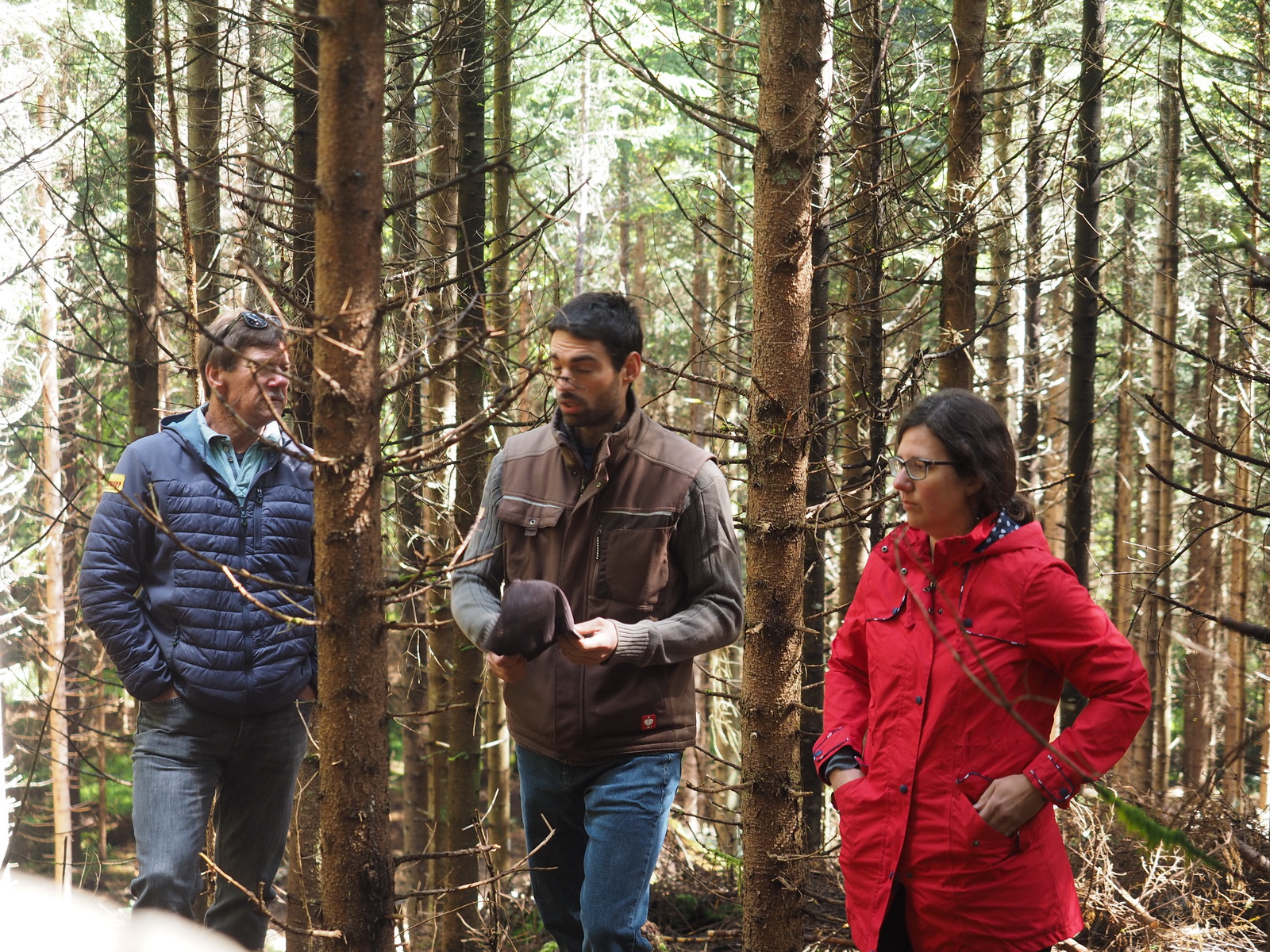 Unser langjähriges Mitglied Theo Hippel hat den ursprünglich völlig ausgeschlägerten Waldbesitz von seinem Großvater übernommen, der vor 85 Jahren begonnen hat, die Flächen wieder zu bewalden. Nach Jahrzehnten der achtsamen Pflege der Bestände kann er nun einen gut strukturierten vielfach mehrschichtigen Wald an die nächste Generation in der Familie übergeben. Tannenreiche Mischbestände mit Laubholzinseln werden in Eigenregie einzelstammweise bewirtschaftet.