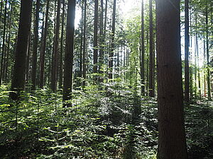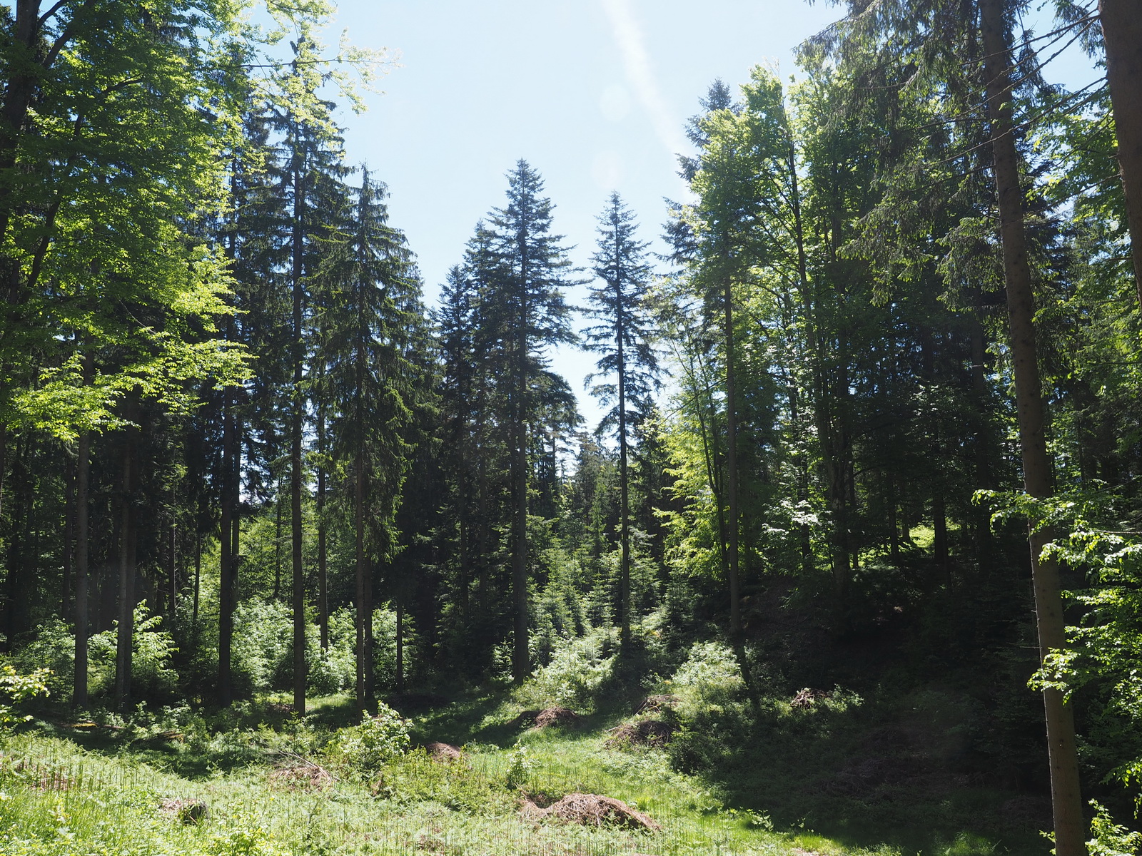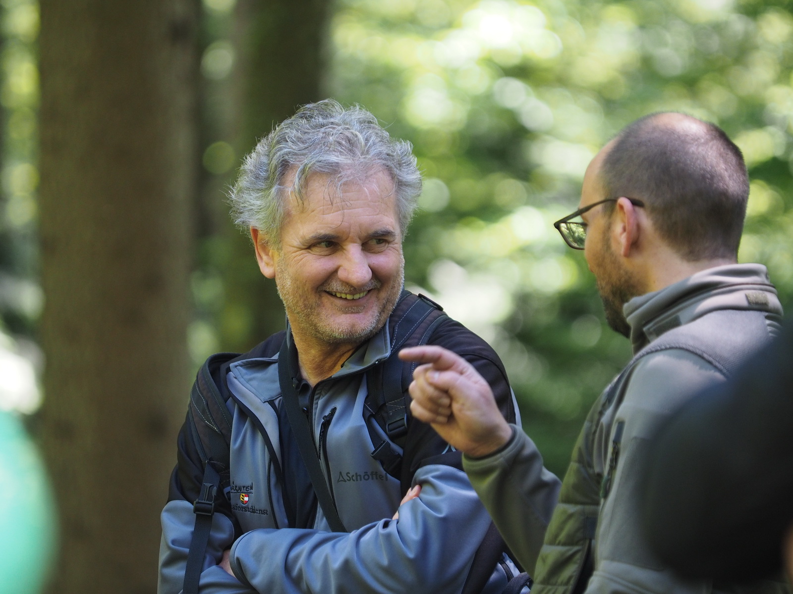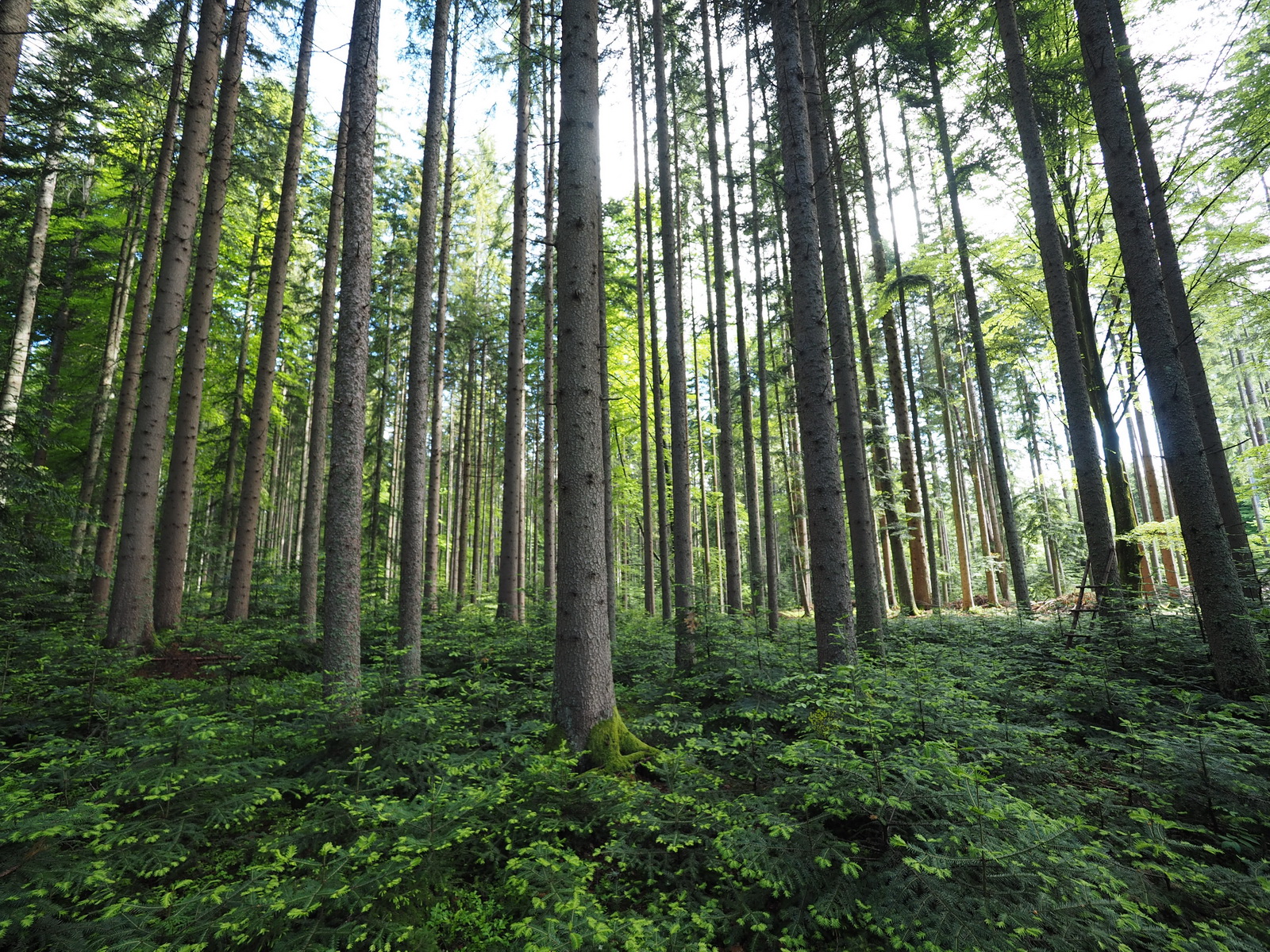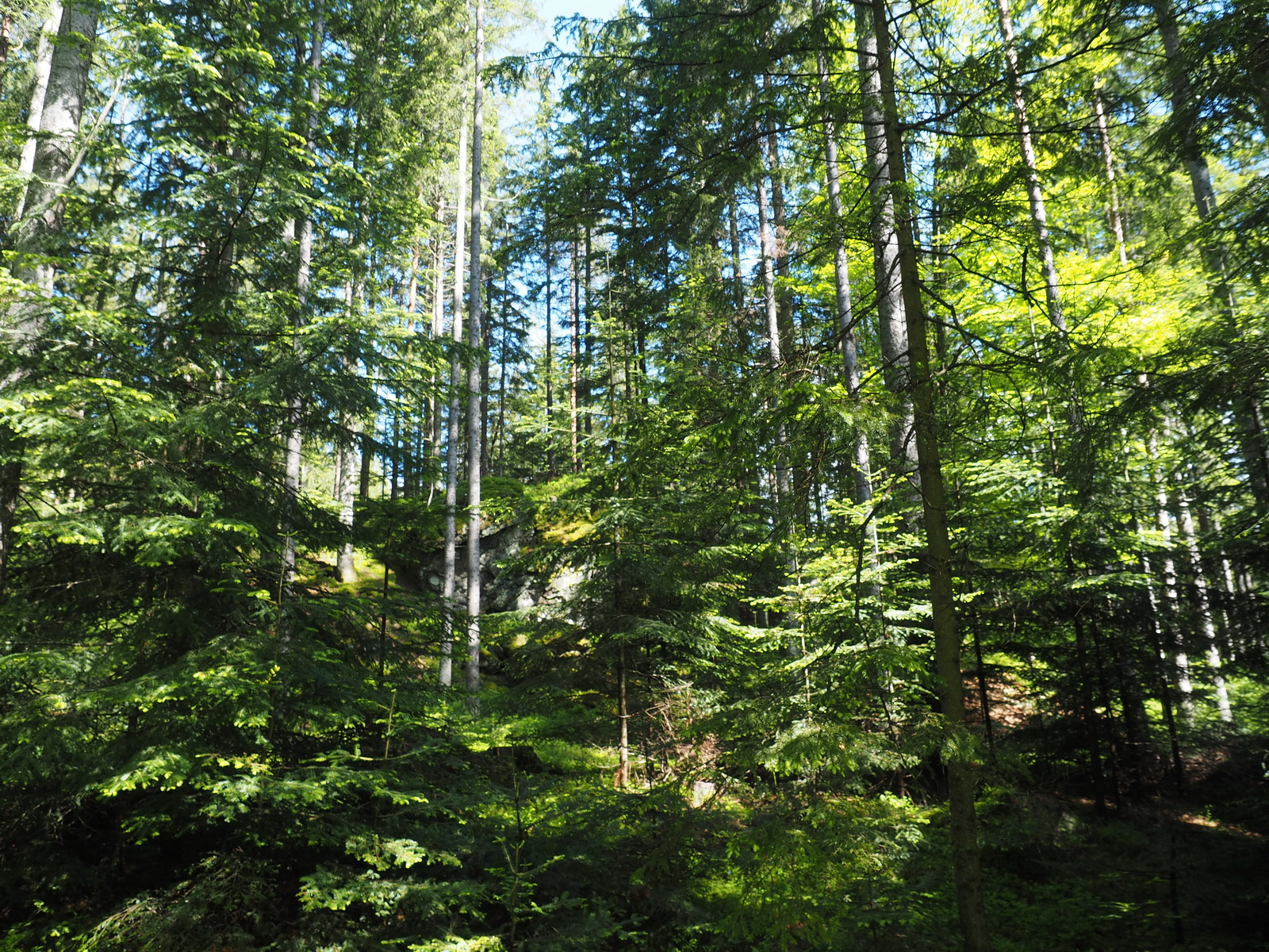 Unser langjähriges Mitglied Theo Hippel hat den ursprünglich völlig ausgeschlägerten Waldbesitz von seinem Großvater übernommen, der vor 85 Jahren begonnen hat, die Flächen wieder zu bewalden. Nach Jahrzehnten der achtsamen Pflege der Bestände kann er nun einen gut strukturierten vielfach mehrschichtigen Wald an die nächste Generation in der Familie übergeben. Tannenreiche Mischbestände mit Laubholzinseln werden in Eigenregie einzelstammweise bewirtschaftet.