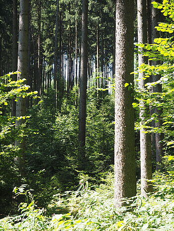 Waldentwicklung und Waldumbau im Wolschaftwald in Fichtenrandlage