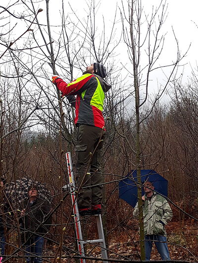 Am Nachmittag wurden die verschiedenen Phasen der Laubwertholzbewirtschaftung mit praktischen Vorführungen besichtigt:
