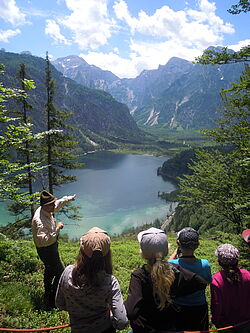 Das Programm von Fritz Wolf, dem Begründer das Waldpädagogik in Österreich führte in die Vergangenheit der Waldbewirtschaftung vor 1852, in die Zeit von 1852 bis 1975 und dann in die Gegenwart und Zukunft. Besichtigt wurden der Waldbesitz Herle, der Cumberland Wildtierpark mit modernem Holzbau und die von Konrad Lorenz gegründete Forschungsstation in Grünau im Almtal.