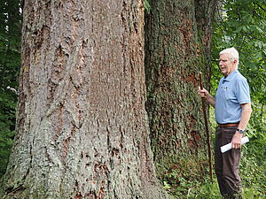 Einen Eindruck über die historische Waldnutzung vermittelte ein Rundgang durch das Forstmuseum Silvanum in Großreifling, welches in einem alten Getreidespeicher untergebracht ist. Zuvor Stand die Besichtigung des bekannten kleinflächigen Douglasienbestandes nahe Großreifling am Programm, welcher vor mehr als 100 Jahren als Aufforstungsversuch begründet wurde und nunmehr angesichts des beachtlichen Vorrates von 2500 Vfm/ha als „massenreichster Waldbestand Österreichs“ bezeichnet wird. Demnach kann auf ausgewählten kalkfreien Braunlehmstandorten in den Kalkalpen mit Douglasie das Baumartenspektrum erweitert werden.