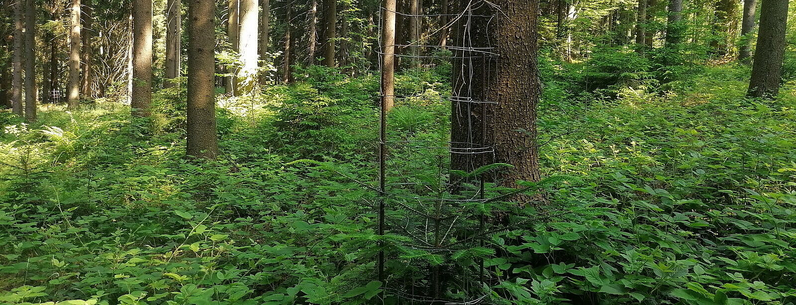 Wenn der fichtenreiche Ausgangsbestand die erwünschte Vielfalt für die nächste Baumgeneration nicht garantieren kann, ist ein gezielter Unterbau mit standortsgerechten Baumarten eine Möglichkeit um den Umwandlungsprozess zu beschleunigen. Familie Thumfart verfolgt das Ziel zusätzlich zur Hauptbaumart Fichte mindestens drei Mischbaumarten als Risikostreuung auf der Fläche einzubringen. Vor sieben Jahren erfolgte ein Jagdpächterwechsel. Seither wird der Aufbau eines zukunftsfähigen Waldes durch die Jagd aktiv unterstützt.