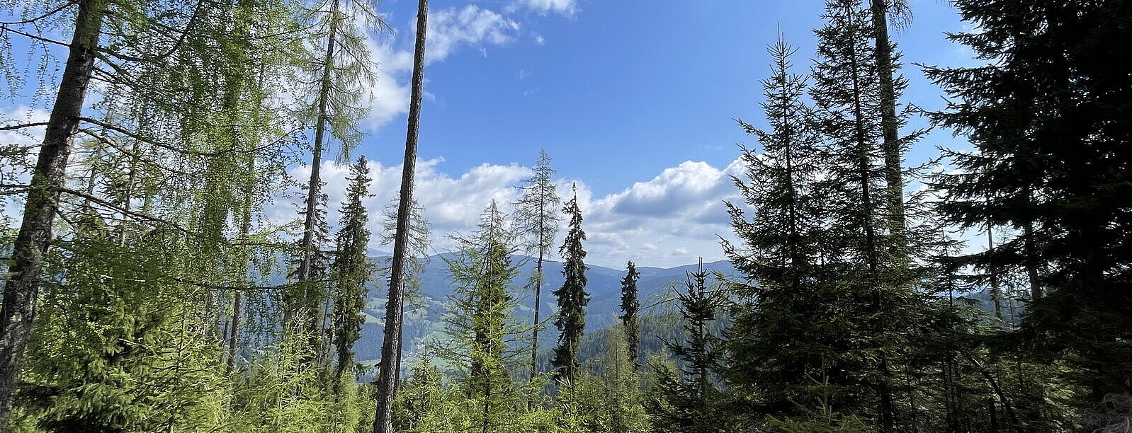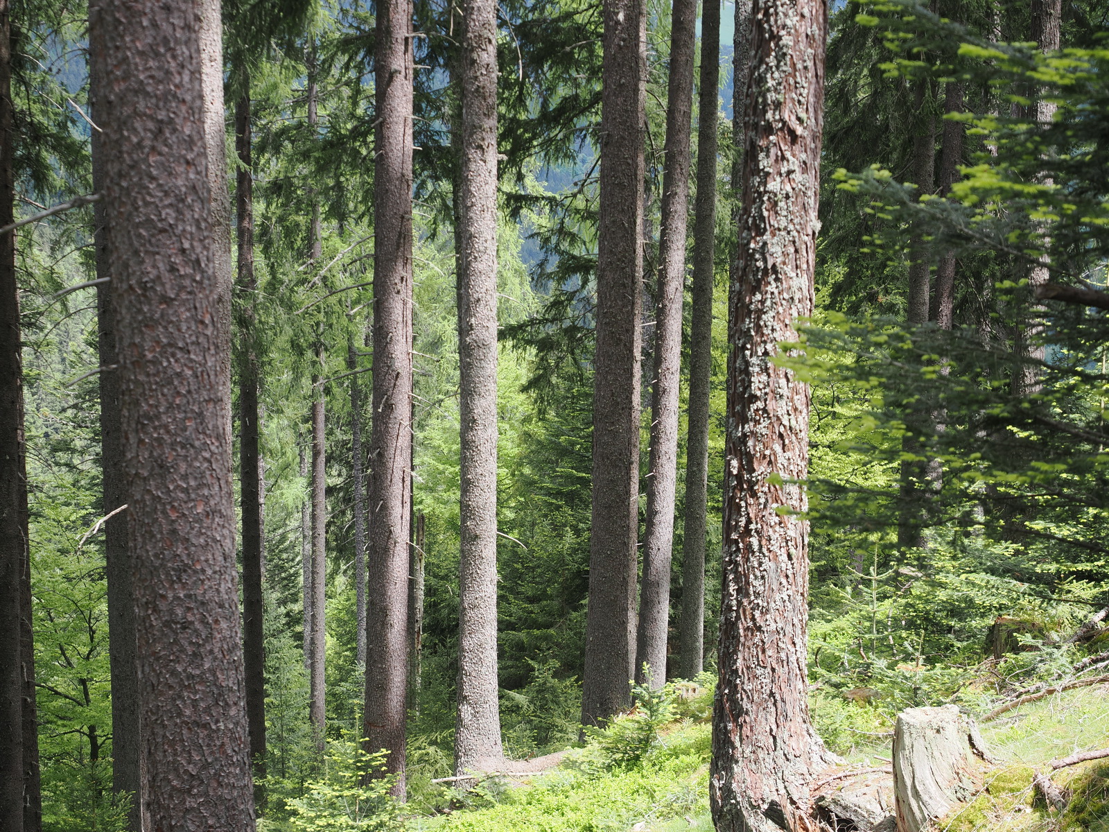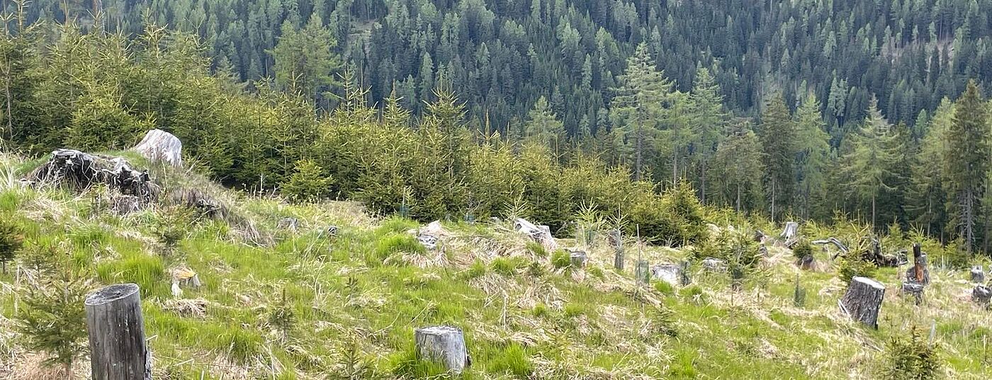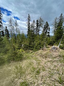 Diese Fichten werden dann bei der nächsten Läuterung (ca. 3 Jahre Abstand zwischen den Läuterungen) entnommen, erklärte Herr Carletto Lodron. Des Weiteren wurde bei dieser Läuterung darauf geachtet, dass eine Mehrschichtigkeit des Bestandes gefördert wird.