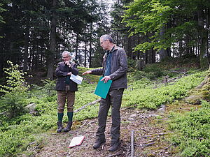 Danach wurde eine weitere Schadfläche besichtigt, bei der sehr gut zu erkennen war, welchen Unterschied es ausmacht, ob vor dem Schadereignis bereits eine Naturverjüngung unter dem Schirm des Altholzes stattgefunden hat oder nicht.