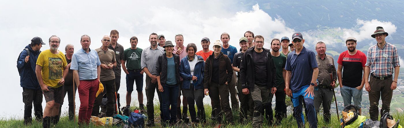 Die Bezirksförster der Bezirksforstinspektion Innsbruck, Matthias Saurer und Markus Kostenzer bereicherten die Exkursion mit ihren Erfahrungen auf der betroffenen Fläche. Das Programm der Exkursion reichte von Maßnahmen zur Aufrechterhaltung und Wiederherstellung der Schutzfunktion nach dem Brand, über die Neuausrichtung des jagdlichen Bewirtschaftungskonzepts bis hin zur Vorstellung der begleitenden Forschungsarbeiten rund um das Thema Waldbrand im Schutzwald.
