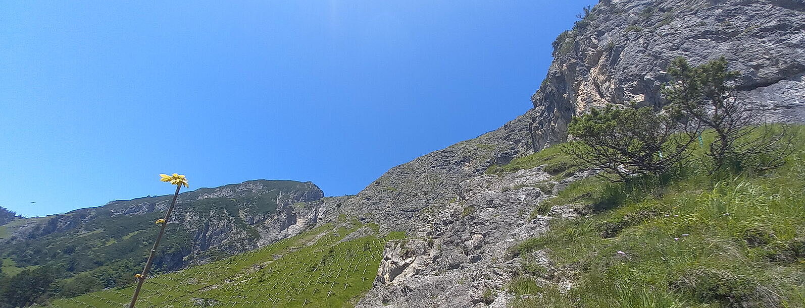 Entlang des Weges wurden die unterschiedlichen Herausforderungen für die Wiederbewaldung der steilen, südexponierten Schutzwaldstandorte aus Sicht des zuständigen Forstdienstes vorgestellt. Die Teilnehmenden konnten sich zudem ein eigenes Bild über Ausmaß und Entwicklung der ehemaligen Brandflächen entwerfen.