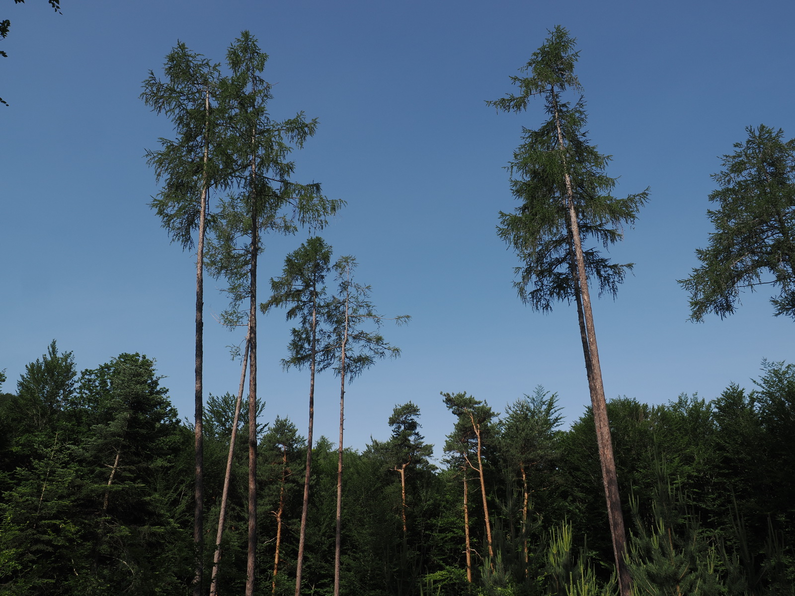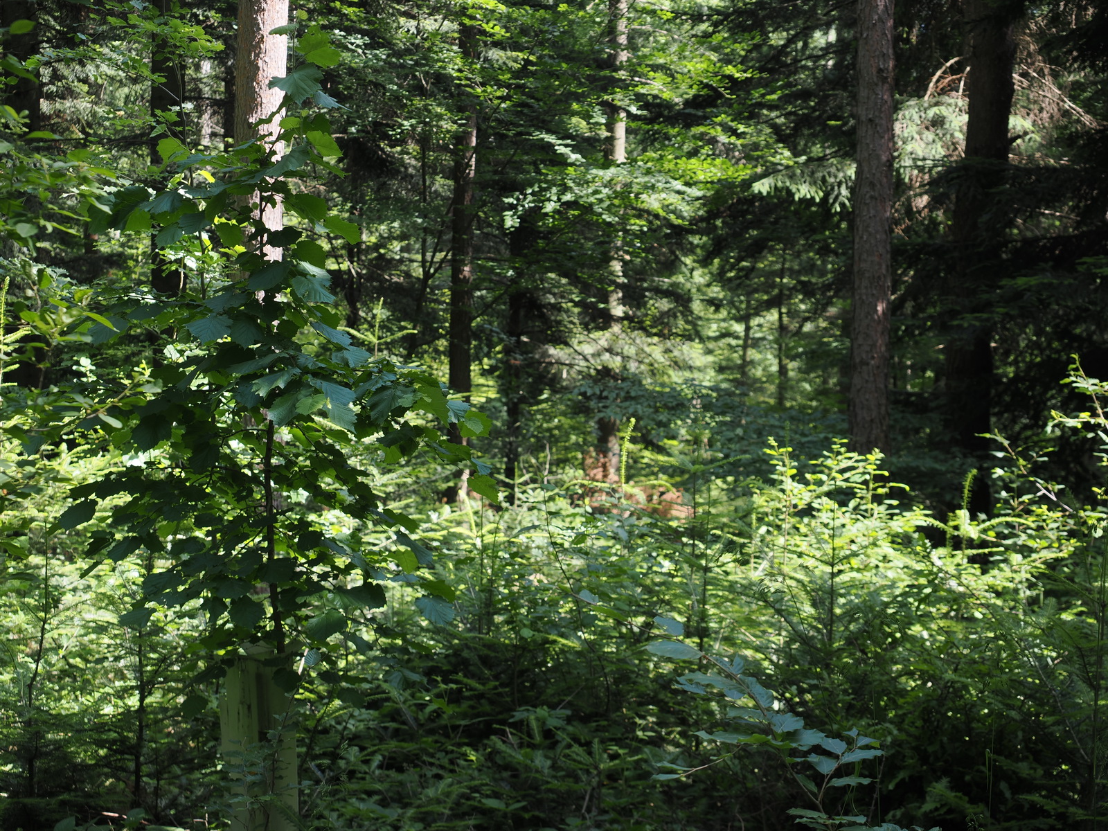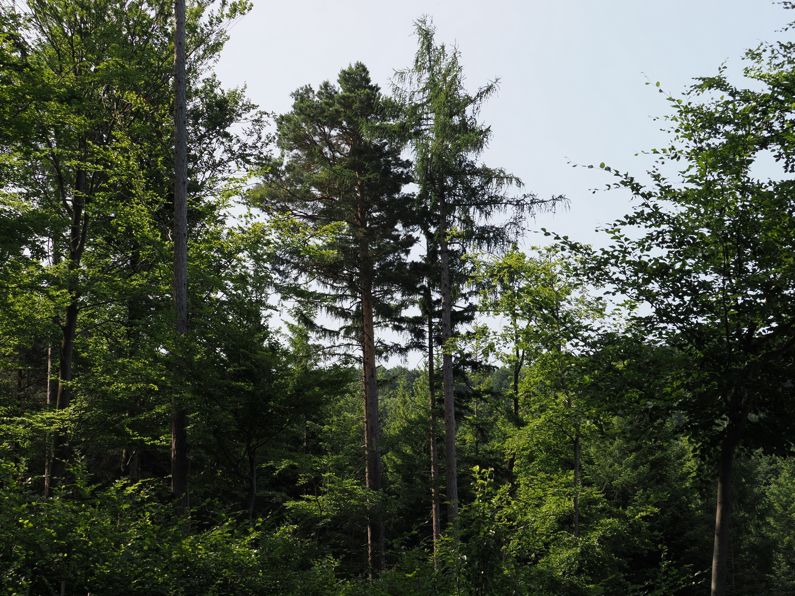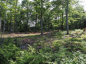 Bei einem Buchen-Kiefern-Lärchen-Bestand des Betriebs mit historischer Streunutzung zeigten sich die langfristigen Auswirkungen des Nährstoffentzugs auf das Wachstumspotenzial. Durch gezielte Vorlichtung wurde mittlerweile die Naturverjüngung – insbesondere lichtbedürftige Arten – gefördert.