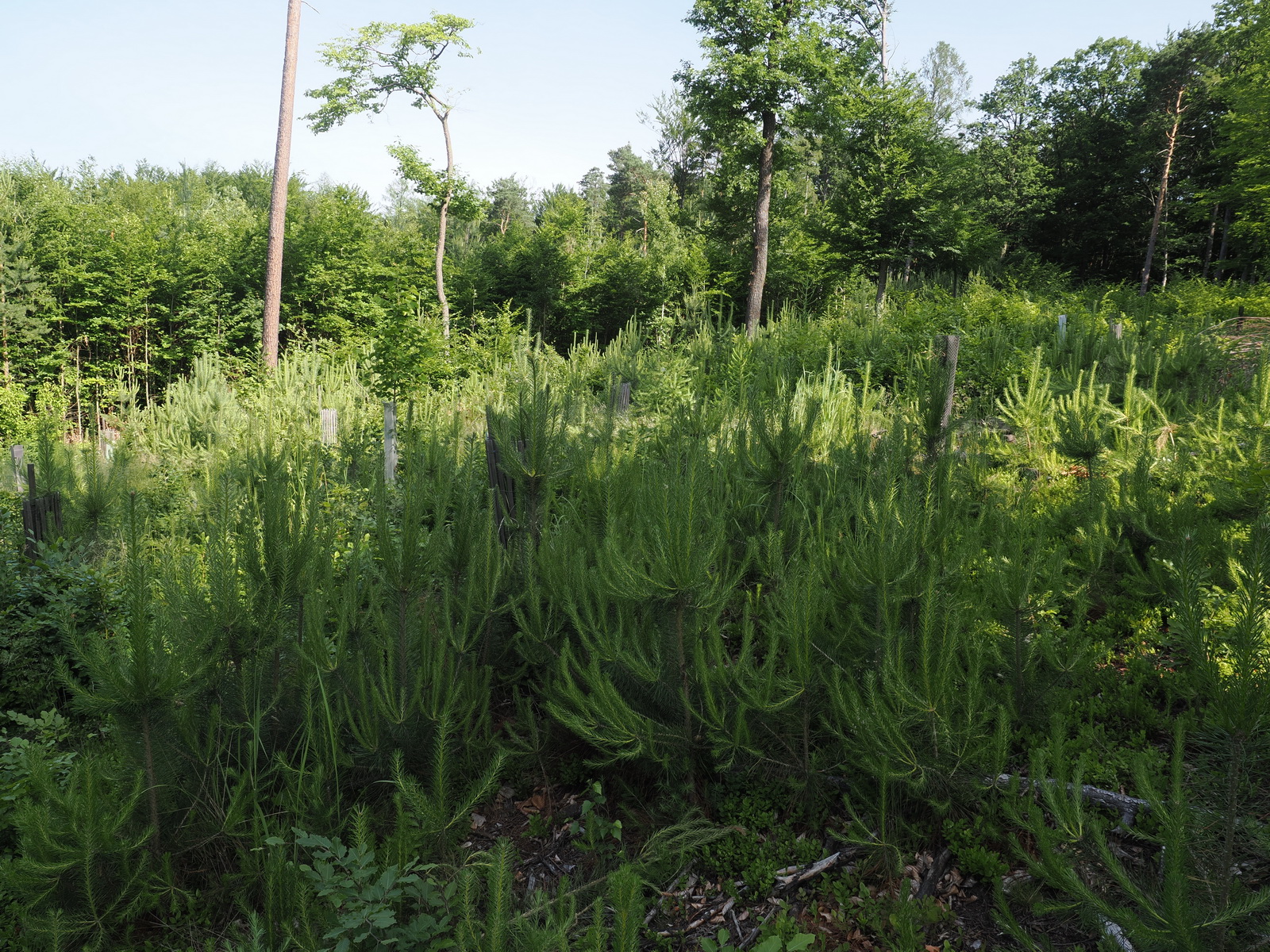Entlang von Wegen wurden mit Unterstützung der Jagd seltene Baumarten gepflanzt. Auf flächige Zäunungen wird verzichtet, Einzelverbissschutz bei seltenen Baumarten ist ausreichend. Angesichts des vielfältigen Äsungsangebots im Wald wurde offen diskutiert, ob Wildfütterung überhaupt noch zeitgemäß und notwendig ist. Außerdem können Kontrollzäune und Weiserflächen wertvolle Informationen über die Naturverjüngung liefern.