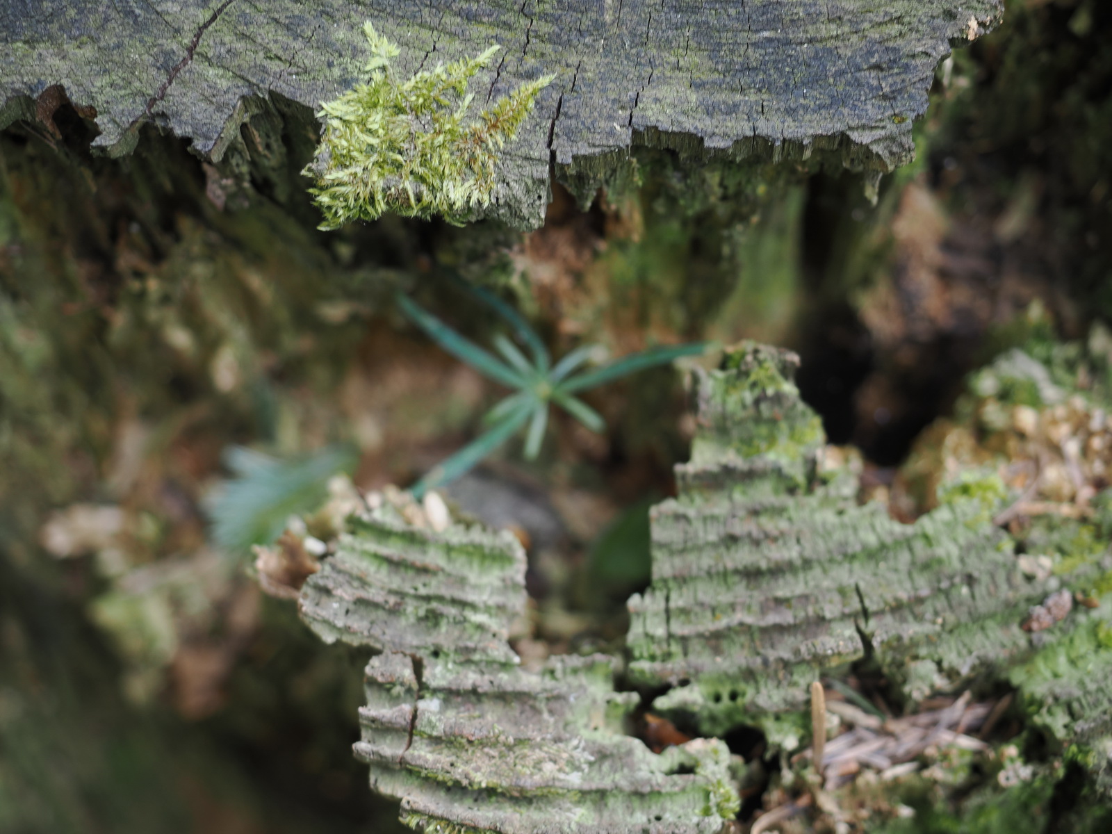 Ein rund 50 Jahre alter Bestand, nach Kahlschlag mit Fichte, Kiefer und Lärche aufgeforstet, diente als Beispiel für Diversität: Auf die Kulturpflege wurde damals vergessen, dies führte dazu das Mischbaumarten nicht versehentlich um geschnitten wurden. Dadurch konnten sich zum Beispiel Eichen, Buchen und Edelkastanien etablieren – ein ökologischer Gewinn. Die mittlerweile ins Stangenholz wachsende Eichen wurden geastet und freigestellt um ihr Dickenwachstum zu fördern.
