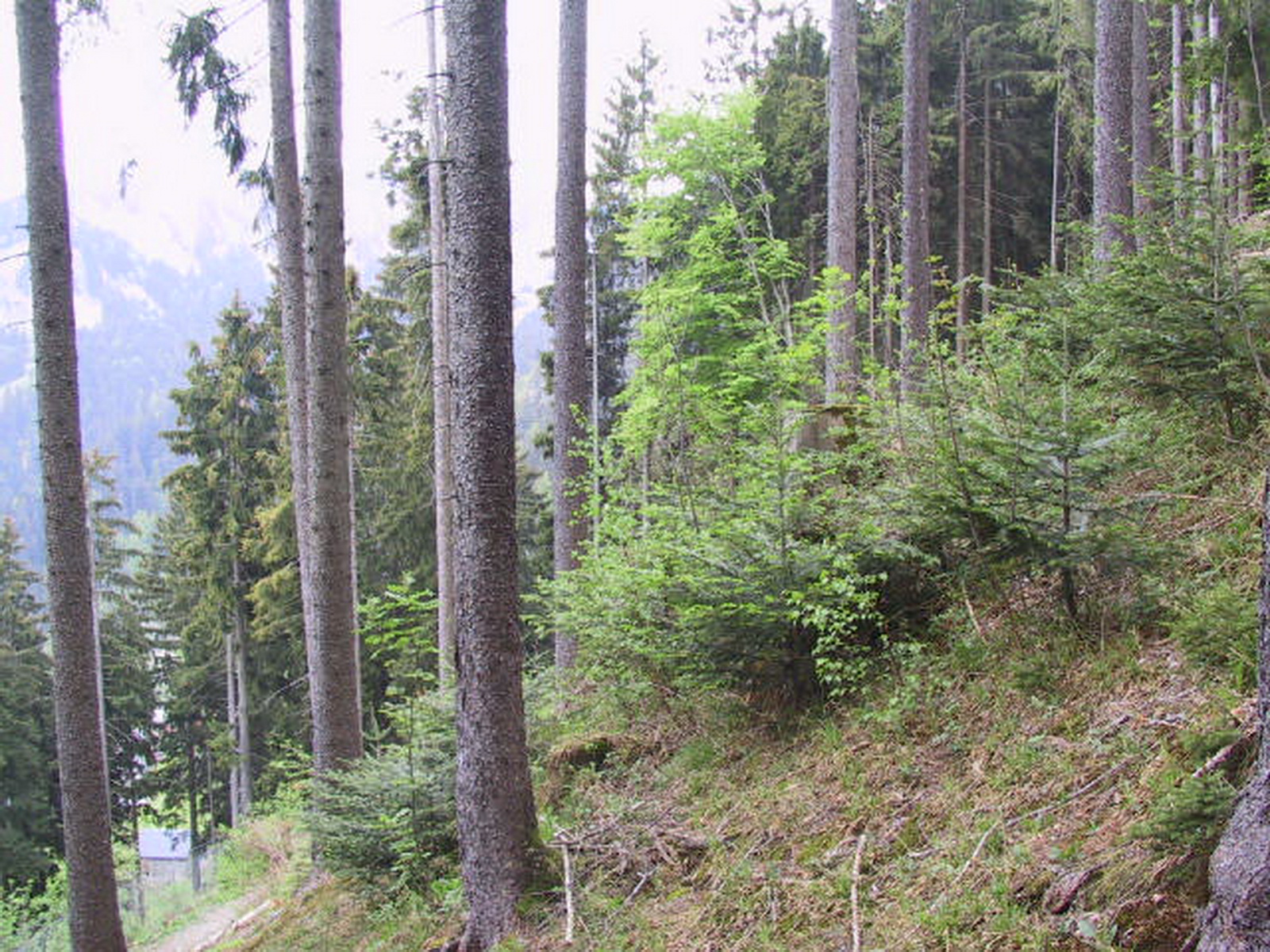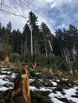 Das zweite Projekt ist in Dornbirn in der Bergparzelle Ebnit angesiedelt. Neben Steinschlag, Hochwasser und Rutschungen sind (bzw. waren) hier auch Lawinen ein Thema. Es kommen Reh-, Rot- und Gamswild vor. Die sehr konsequente Umsetzung eines Jagdkonzeptes ermöglicht eine baumartenreiche Verjüngung der ehemaligen Fichten-Wald-Weidewälder. Zur Erhöhung der Baumartendiversität wurden in Teilbereichen „größere“ Nutzungseingriffe durchgeführt – stets unter Bedachtnahme auf Schutzfunktion, Stabilität und Resilienz.
