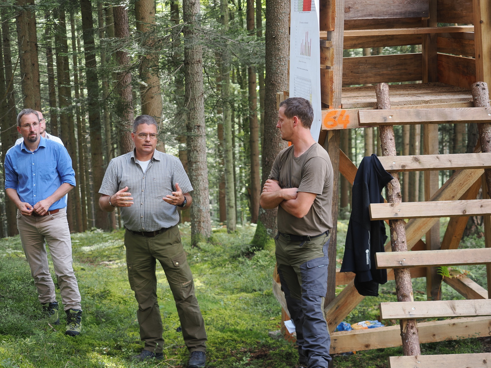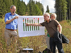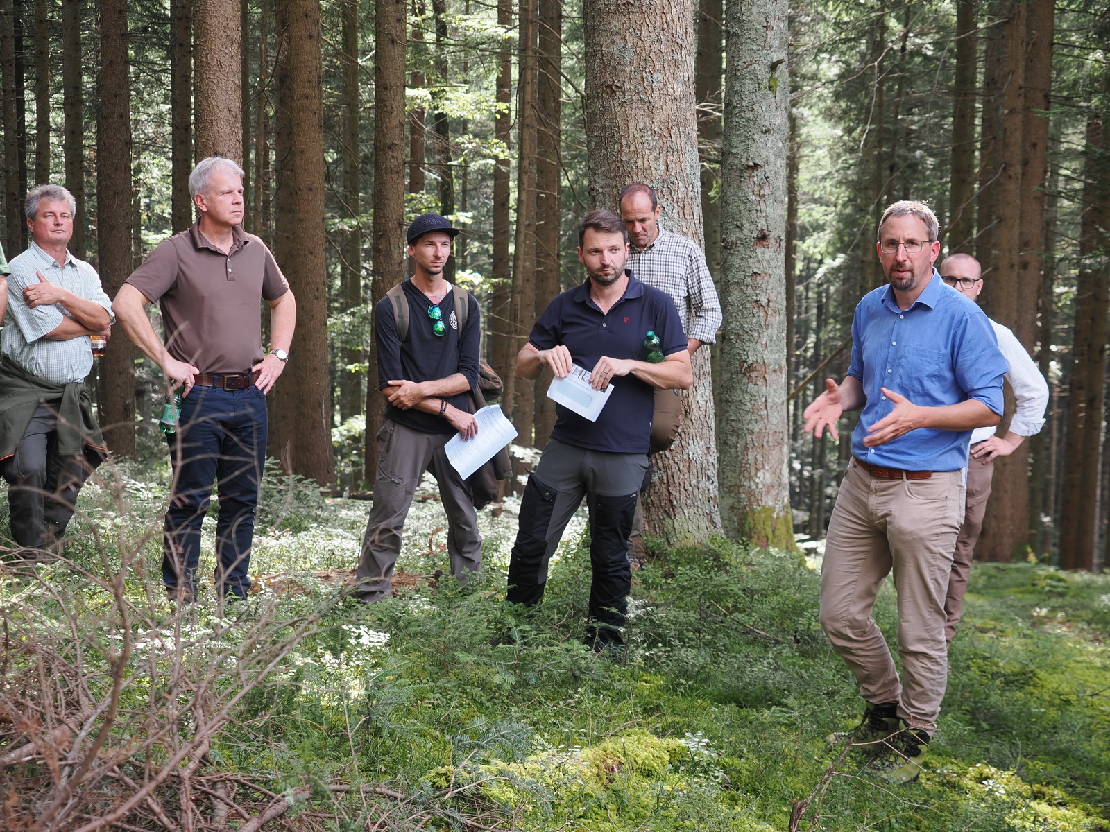 Den Schlusspunkt der Veranstaltung setzte am Nachmittag der Exkursionspunkt „Eggforst“, wo Revierleiter Harald Zollner erklärte, wie durch geschickte Jagd-Strategien und entsprechende Begleitmaßnahmen nach den vielen Schneebruch- und Käfer-Schäden der letzten Jahre wieder ein gesunder „Wald der Zukunft“ entstehen wird. Bundesforste-Vorstand Andreas Gruber unterstrich in seinen Erklärungen vor Ort auch die bewusste Schaffung von ökologischen Nischen, indem vorhandene Stromleitungs-Flächen durch Rodung und Bepflanzungen in blühende Wild- und Bienenwiesen als Bruträume und als Äsungs-Ergänzung geschaffen werden.