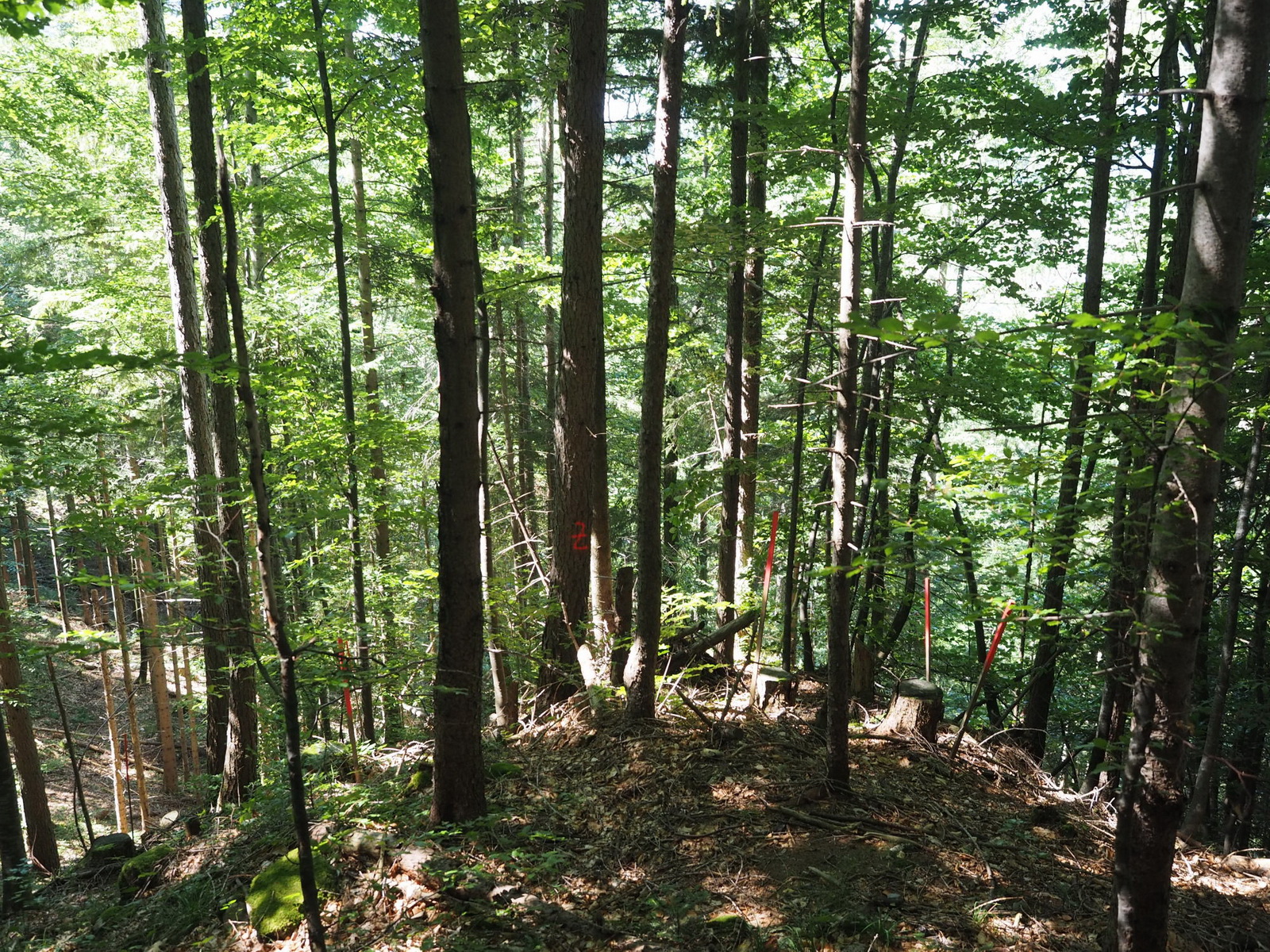 Dass die Bergwaldrichtlinie und das Konzept der kahlschlagfreien Waldbewirtschaftung mit dem langfristigen Ziel der Erzielung und Erhaltung eines Dauerwaldes auch auf flacheren, aber sehr schwierig zu bewirtschaftenden, extrem wüchsigen Flyschstandorten mit einer guten Basiserschließung und Seilkranbewirtschaftung auch ökonomisch höchst interessant sein können, konnten unsere Exkursionsleiter am zweiten Exkursionsstandort schlüssig argumentieren und zeigen. Die Waldbilder sprachen für sich ….
