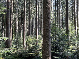 Nach dem Mittagessen an der Landwirtschaftsschule Vöcklabruck wurde ein typischer Dauerwald im Revier des Stift St. Florian von OFö. Othmar Aichinger vorgestellt. In diesem „Vorbildbestand“ spürten die Teilnehmer durch das kühle Bestandesklima die positven Auswirkungen bei den sommerlichen Temperaturen.