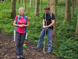 Im Wald von Ewald Stögermayr nahm Gabriele Schindlmayr eine vegetationskundliche Einordnung des Standortes vor. Bestimmte Zeigerpflanzen geben uns Hinweise auf den Wasserhaushalt. Mit einfachen Mitteln demonstrierte sie die wichtige Wasserspeicherfähigkeit der Waldmoose.