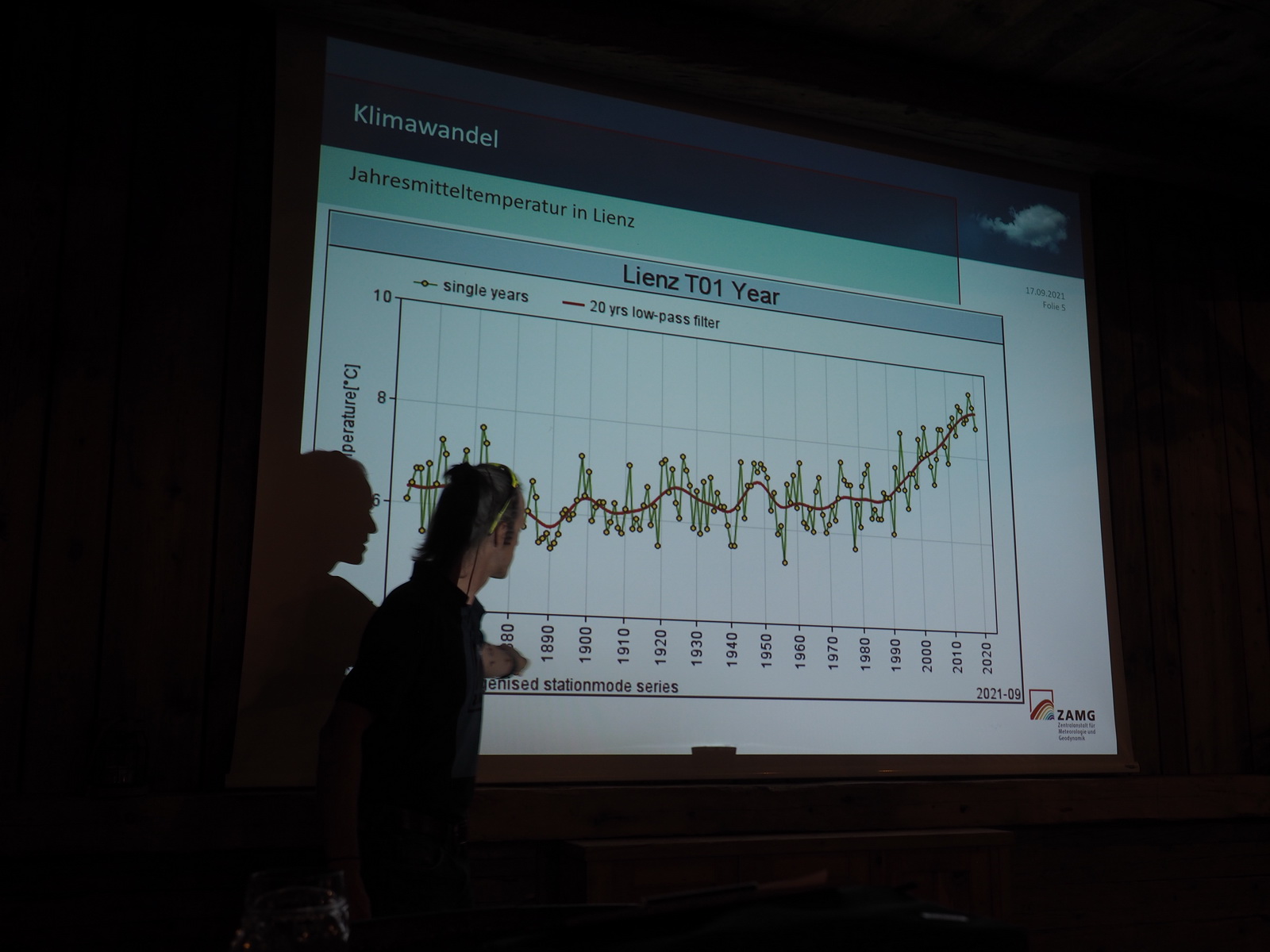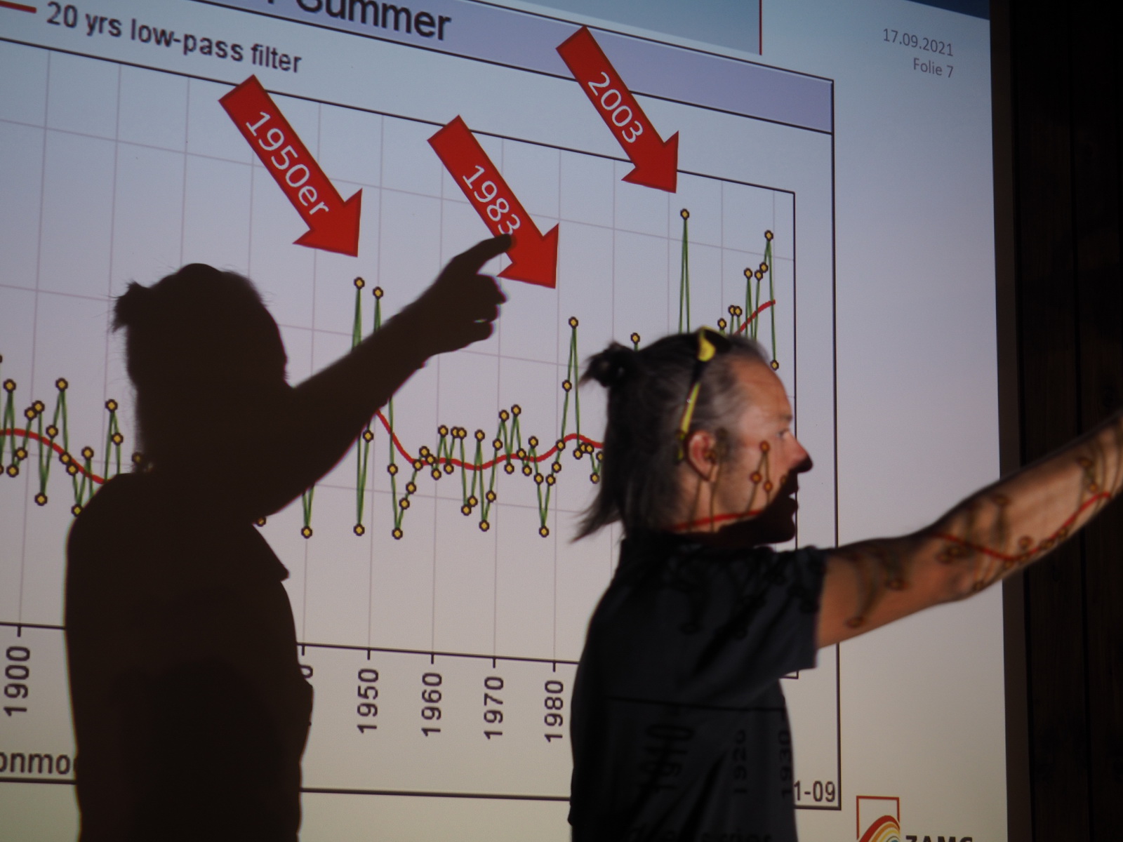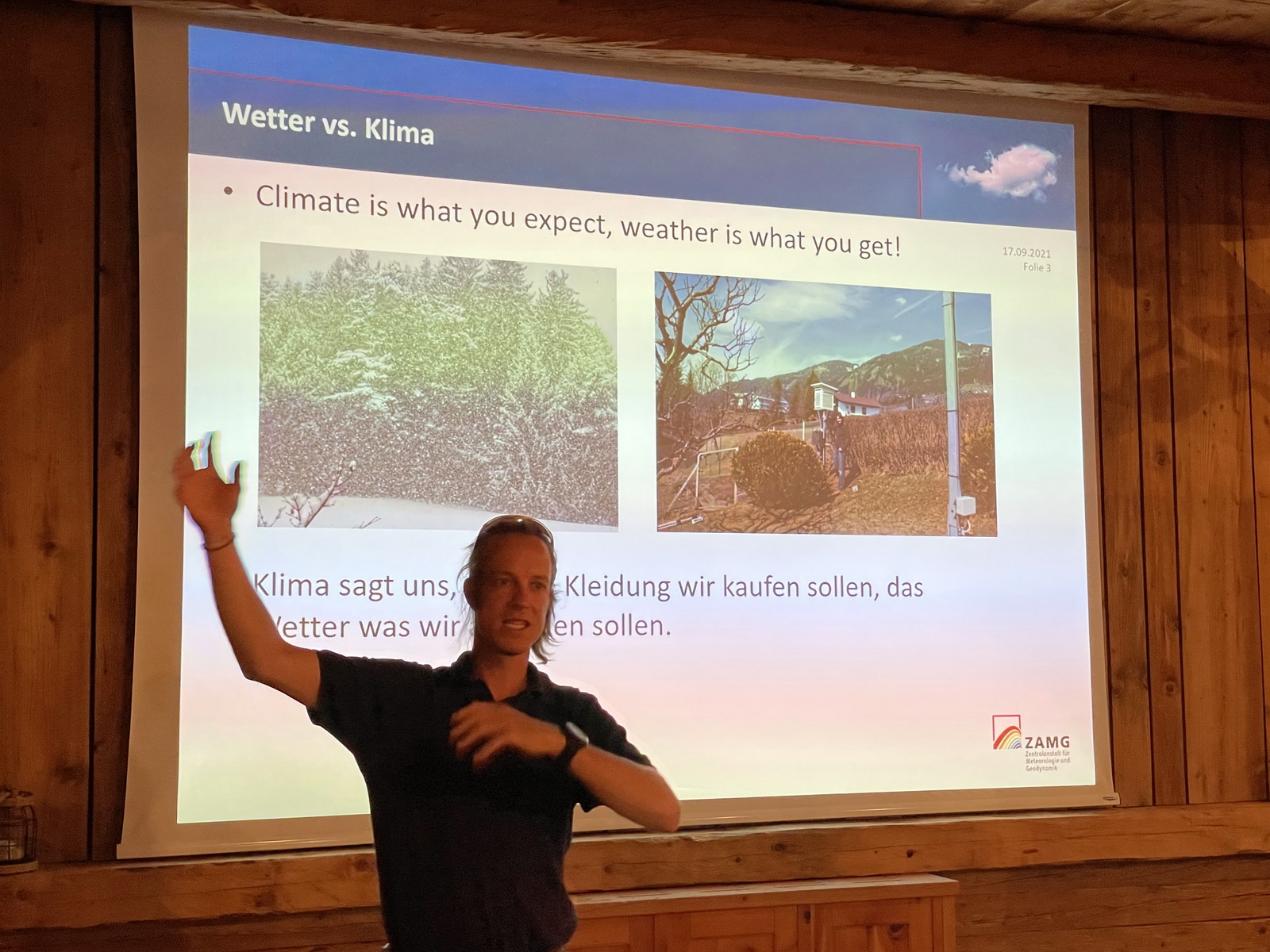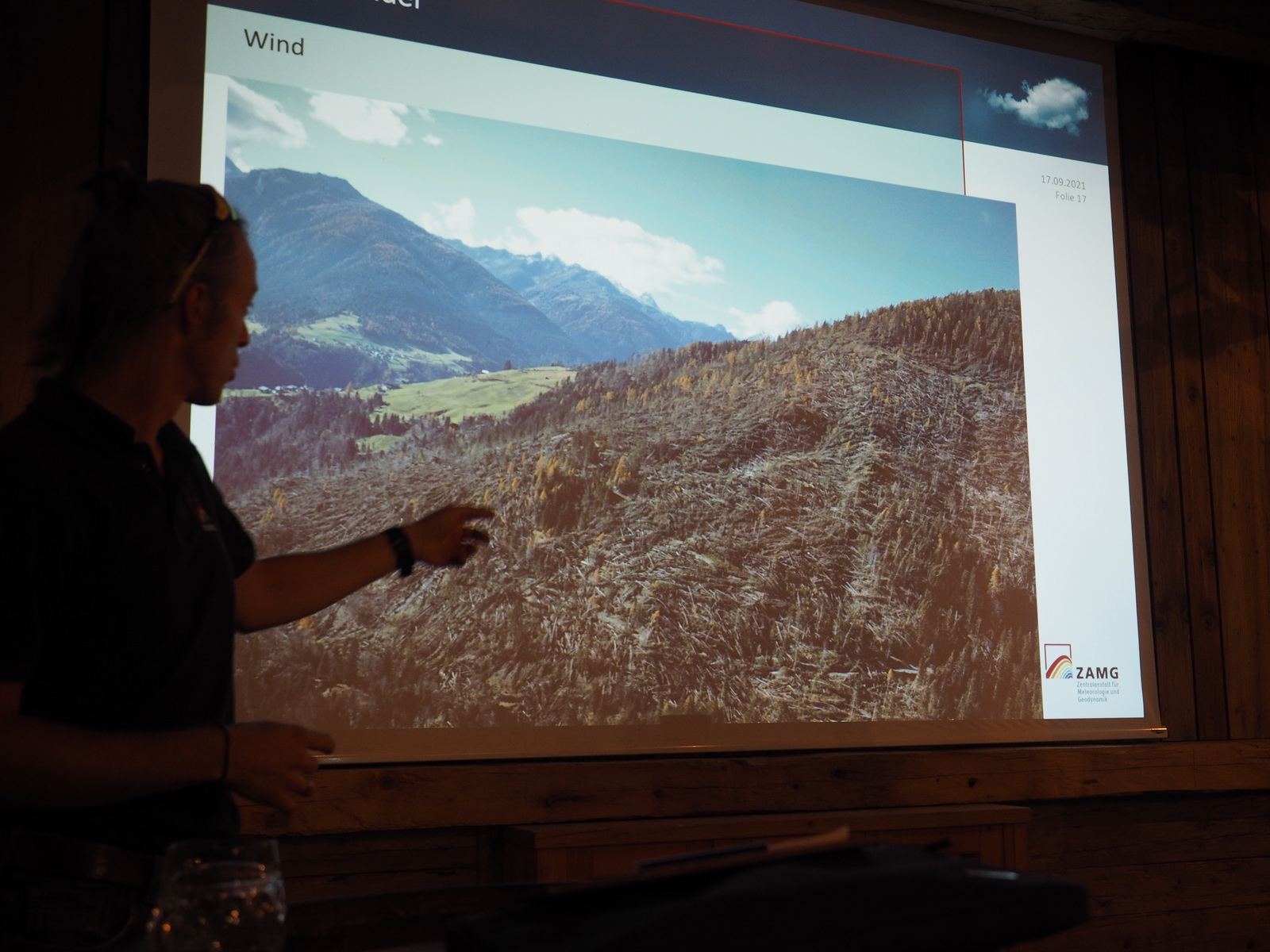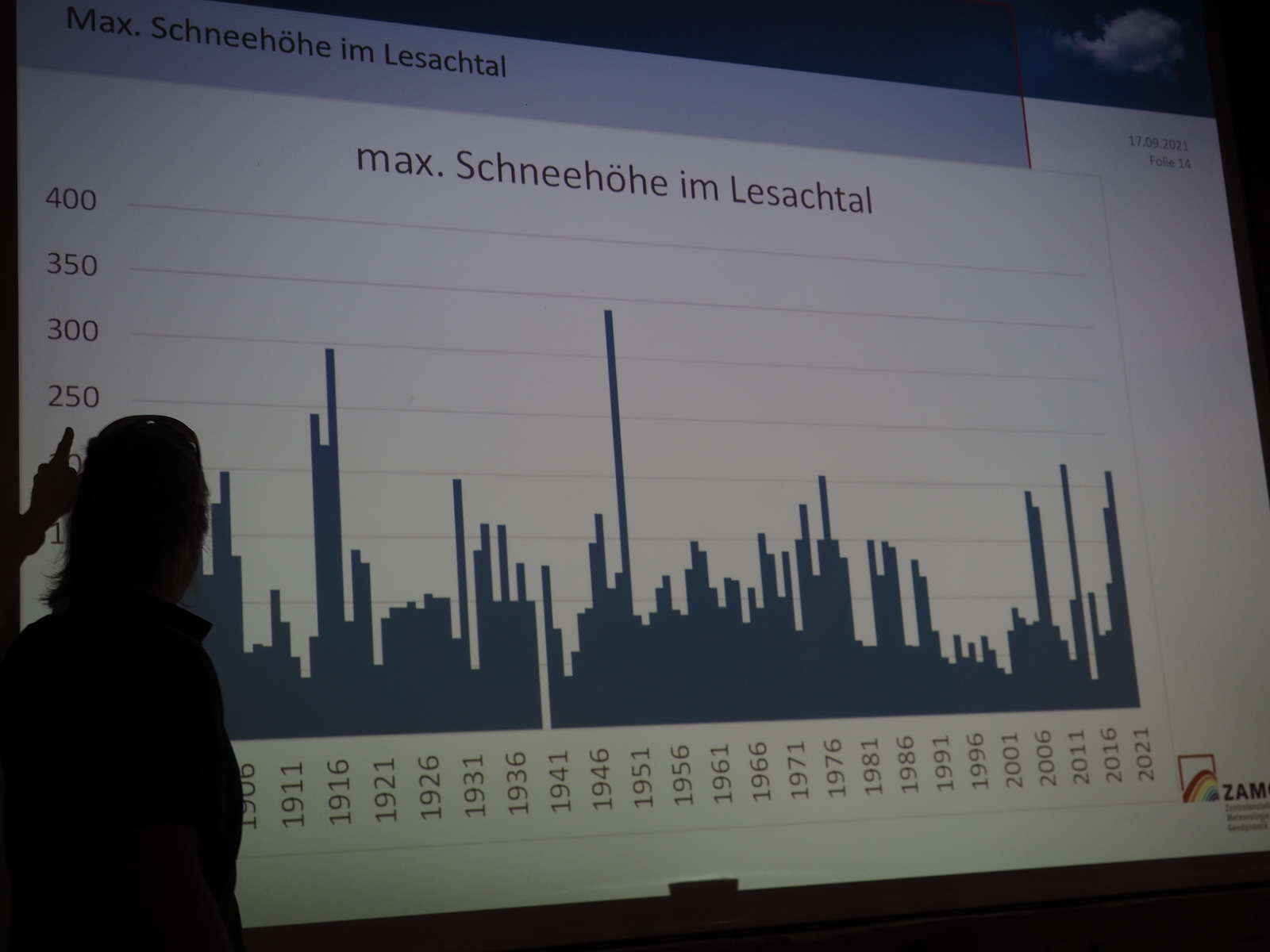 Der Festvortrag von Mag. Gerhard Hohenwarter (Metereologe der ZAMG, Kärnten) "Klimaszenarien und mögliche Folgen für den Wald" bot alarmierende Aussichten für den Bergwald, wo die Folgen der Extremereignisse der Jahre 2018 bis 2020 im Rahmen der Exkursionen zu sehen waren.